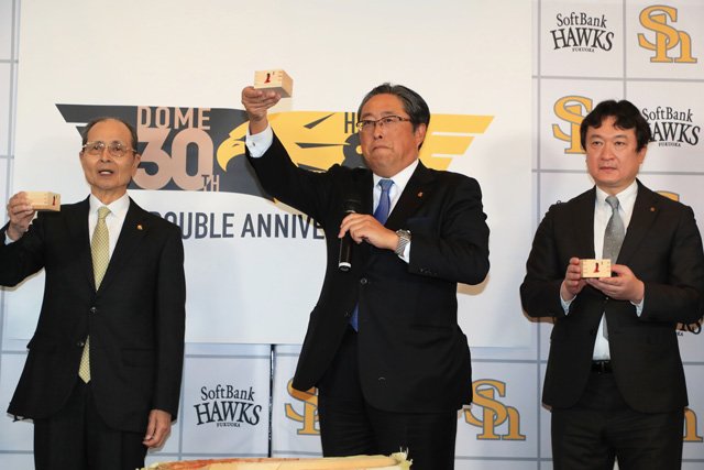 後藤社長も改めて「ホークスは当初から10連覇するのを目標にしてきました。それを達成できるチームにしたいという観点から『10年の計』を考えています。今入ってきた選手たちは高卒ならば18歳。10年経って28歳です。その時に主力になっていてほしい。また、『準・主力』の選手たちは必死に努力しています。彼らは、今回の補強で入団した選手を見ながら、その上を行かないとレギュラーになれないと考えるはずです。厳しいチームだけど、それを乗り越えないと本当に力があるレギュラーになれない。つまり、補強こそが選手の育成であるというのが私達の信念。過去の歴史もそれを証明してくれていると思っております。今回の補強は改めて申し上げますが、育成のための補助でもあるということをぜひ申し上げたい」と語りました。そのうえで「チームも日本一。ビジネスも日本一。二つの日本一を勝ち取って、私達のホークスが福岡に対して大きな貢献をさせていただきたいと思っております。ぜひ今年も応援をよろしくお願い申し上げます」と高らかに今季の躍進を誓いました。