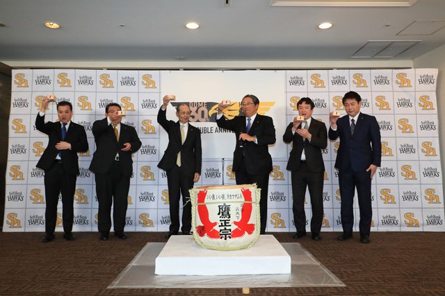 王貞治会長兼特別チームアドバイザー、後藤芳光社長兼オーナー代行をはじめとした球団フロント陣の前に大きな酒樽が置かれると、3年ぶりとなるパ・リーグ優勝と日本一の奪回を祈願して、力強く白木のバットが木製の蓋へと振り下ろされました。