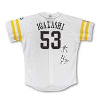2014年版・五十嵐 亮太投手着用サイズの本人モデルユニフォーム(ホーム仕様)に本人直筆サインが入ったプレミアム品です。