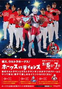 9月6日(土)、7日(日)の2日間は、「パ・リーグ 親子ヒーロープロジェクト」として、ヤフオクドームにウルトラマンとウルトラマンギンガ、10体の星人が登場し、親子で楽しめる様々なイベントを行います。