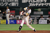 9回の猛反撃。まずは先頭の明石健志選手が二塁打で出塁。1アウト後、2番の今宮健太選手が左中間突破の二塁打を放ってまずは1点を返しました。