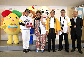 初戦の29日(金)の試合前には工藤公康監督へ激励品の贈呈もありました。贈呈式には「みやざき大使」でタレントの石塚英彦さんがプレゼンターとして登場。宮崎特産の「完熟マンゴー太陽のタマゴ」が工藤監督へ手渡されました。「ちょっと早いですが、優勝おめでとうございます」という言葉も頂いた工藤監督は照れ笑いを浮かべつつ、試食をすると石塚さんの決めゼリフである「まいう~!」と美味しそうに口いっぱいに頬張っていました。