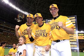 投手戦となった試合で持ち味を発揮したのが、先発したバンデンハーク投手でした。初回からエンジン全開でこの日最速の154キロのストレートで相手打者に押し勝つと、7回に降板するまで全く球威が落ちる気配がありませんでした。前回登板ではコントロールが乱れましたが、工藤公康監督が「前回の帯広はマウンドが柔らかく、着地する左足が安定しなかったから。今日は本拠地なのでよかった」と話すように、無四球の安定したピッチング。バンデンハーク投手自身は「どの球場でも自分はストライクを投げて、抑えることが仕事」と言い訳をしない姿勢を貫きました。「ただ、ヤフオクドームは投げやすいし大好き。それに今日は鷹の祭典。素晴らしい雰囲気で最高だった。スゴイのひと言に尽きるよね」と笑顔を浮かべました。