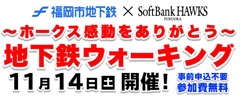 福岡市地下鉄では、地下鉄橋本駅から出発し、福岡タワーやヤフオクドームを経由しながらゴールの地下鉄唐人町駅まで約10kmの距離を歩く「地下鉄ウォーキング」を開催します!