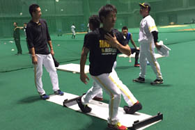 新メニューを加え、股関節、体幹強化などたっぷりと3時間。随分身体が慣れてきた自主参加の本多雄一選手や投手陣ですが、「こんなにたっぷり鍛えてもらえるなんて「雨でよかった」だよね・・・。」とグッタリしつつも「明日はしっかり休もう!」と笑顔で球場を後にしました。