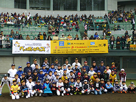 11月29日(日)、福岡ソフトバンクホークスふれあい野球教室「ベースボールキッズin九州」が九州各県(沖縄を除く)の計8会場で開催され、福岡会場には攝津正投手、佐賀会場には松田宣浩選手、宮崎会場には柳田悠岐選手、鹿児島会場には内川聖一選手など各会場でホークス現役選手5名ずつが講師となり、各会場250名ずつ計2000名の子どもたちに野球の技術を伝授したり、一緒に動きまわって遊んだりと楽しい1日を過ごしました。