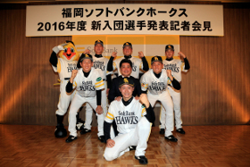 12月2日(水)、先のドラフト会議で指名し、2016年度からホークスに新たに加わる新人選手入団発表が福岡市内のホテルで行われました。6人の若鷹が誕生に、同席した工藤公康監督も笑顔を浮かべていました。