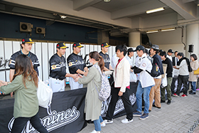熊本・大分地震における被災地への支援の為、4月19日(火)、20日(水)の両日、千葉ロッテマリーンズ戦が開催されたQVCマリンフィールド内で行われた募金活動において、福岡ソフトバンクホークス選手会から各選手が参加しました。