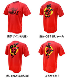 博多名物「からし明太子」をイメージさせる真っ赤なTシャツの背面には博多弁の熱いメッセージがインパクト大!Tシャツのボディは吸水速乾性と紫外線カットを併せ持った高性能。アクティブな応援シーンで大活躍。これを着て熱くホークスを応援しよう!
