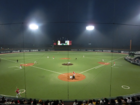 前本拠地の雁の巣球場にはナイター設備がありませんでしたが、タマスタ筑後にはLEDナイター照明が6基備えてあります。今季はこの試合を含め、15試合のナイター試合が予定されています(いずれも18:00開始)。