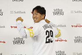 新しい背番号29は、大学の1学年先輩であるスワローズの小川投手と同じ。「すごく良い番号。小川さんは大学の時から尊敬し目標にしてきました。負けないようにこれから頑張りたいし、恥じないプレーをしていきたい」と話しました。