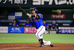 そのままクールにベースを回ったのは「スタンドが青一色だったから(笑)」。ダグアウトで仲間の祝福を受けて、いつものようにスタンドへ向かってポーズを決めると、過去最高ボリュームの「熱男!」コールに、38,500人超満員のヤフオクドームが包まれました。