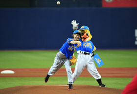 そして宇都宮まきさんにはセレモニアルピッチを行っていただきました。打席に立ったすっちーさんの背中を通過する投球となってしまいましたが、見事なピッチングを披露していただきました。