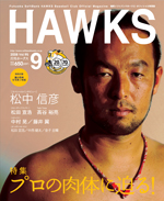 9月号のみどころ鷹の伝統を引き継ぐ2人の選手にスポットをあてご紹介。師弟関係としてもその間柄が注目される松中選手と松田選手がインタビューに登場してくれました。 特集:松中信彦「プロの肉体に迫る!」プロ野球選手として、三冠王という最高の栄誉を手にした2004年。この年から松中信彦は新たなる挑戦をスタートさせていた。更なる飛躍を果たすための「肉体改造」。プロとして最大の結果を求めようとする姿勢がそこには映し出されている。松中信彦、進化の過程。年齢的にも円熟期を迎える2008年、さらなるステージへ歩みを進めている。