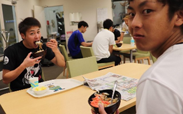 選手と同じメニューをアイビースタジアム食事室で食べよう。