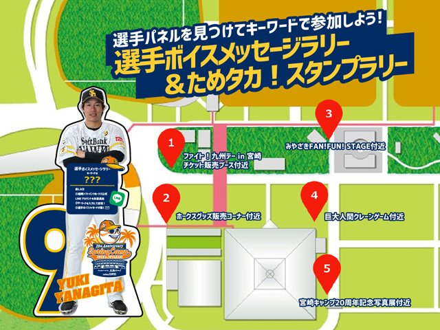 今年は直筆サイン入りボールのスタンドへの投げ込みが復活!また、キャンプ来場者への限定アイテムの配布やキャンプ地内に設置した秘密のキーワードをホークス公式LINEのトーク画面に送信すると選手からボイスメッセージが届く「選手ボイスメッセージラリー」などを実施します!