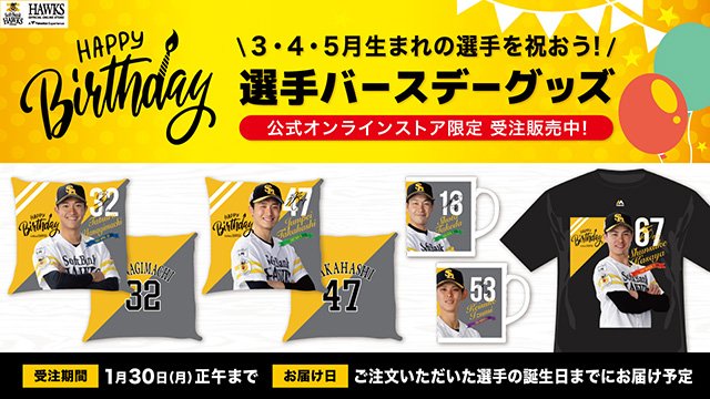 2023シーズンもホークスファンの応援をチームへ届けるグッズを続々開発中!そんな新商品の中から一部を先行して受注販売を開始しました!支配下選手はもちろん育成選手やコーチまで幅広く展開中!いち早く今年の新グッズを手に入れて開幕に向けスタンバイしよう!