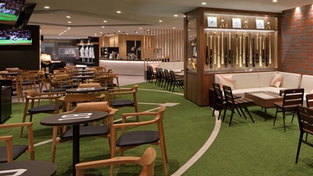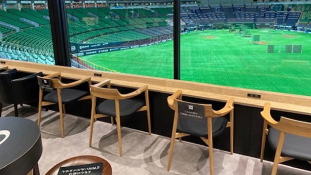 窓際のお席です。球場の様子をガラス越しに見渡せます。