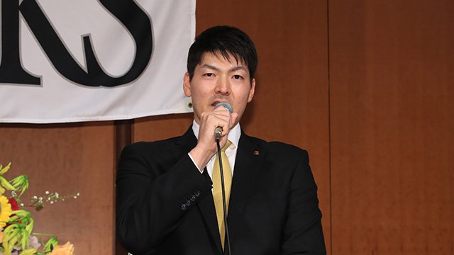 1月28日(土)、有原航平投手(背番号17)の入団会見が福岡市内のホテルで行われました。