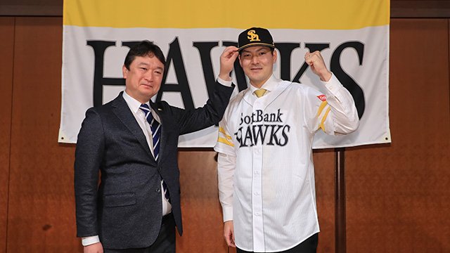 「福岡に来て、ソフトバンクホークスに入団することできてうれしく思っています」