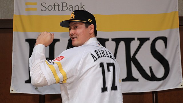 「福岡ソフトバンクホークスのファンの皆様、有原航平です。今シーズンからよろしくお願いします。必死に頑張ります」