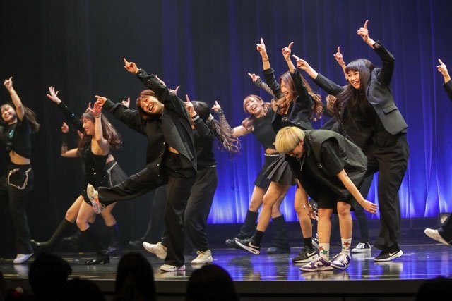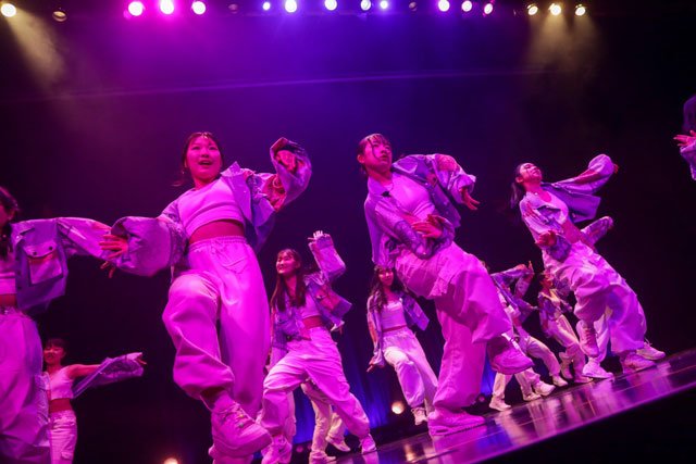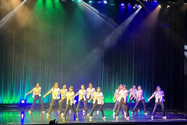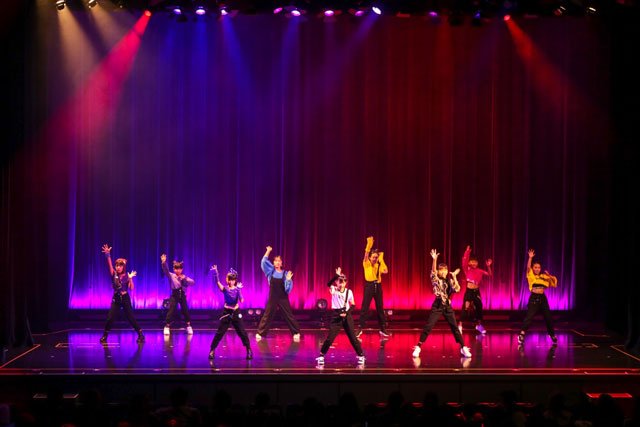 第2部では中学生以上のクラスであるレギュラークラスの生徒による「コンテスト」を実施しました。コンテストに応募した生徒は、2名~7名の出演チームを作り、選曲から楽曲の編集、振付や衣装選びなど一からステージ構成を考えて挑みました。