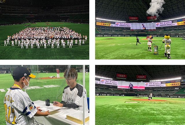 オーナー全員が参加できる「選手と集合写真撮影」やホークス選手になりきる「シート発表体験」を開催予定!イベント内容や応募方法など詳細は随時メール等でお知らせします。