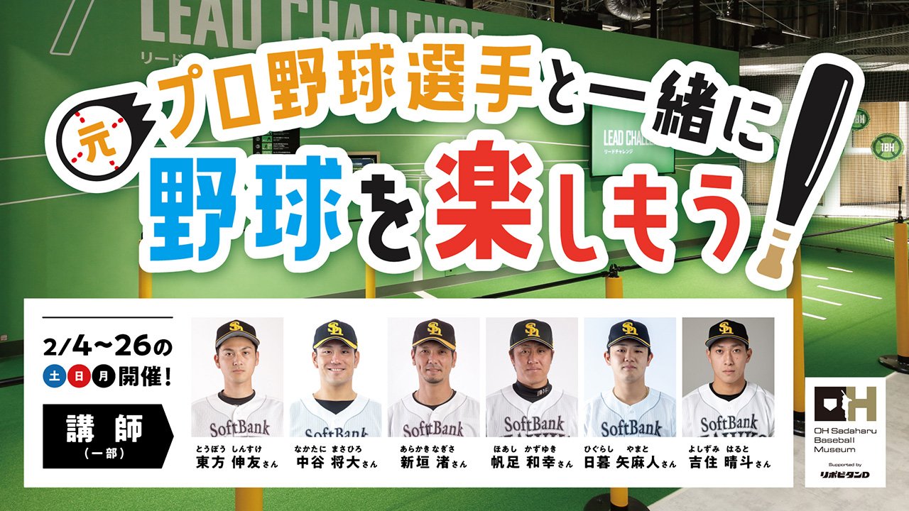 また、2月より新講師が着任!昨年度まで現役だった中谷さん、釜元さん、黒瀬さん、ベテランの若林さんを加え、総勢10名のホークスジュニアアカデミー講師が土日祝に王貞治ベースボールミュージアムで指導してくれます。
