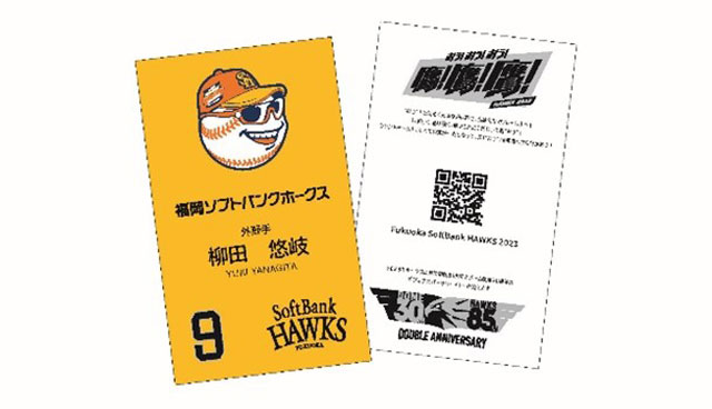 ホークスビレッジ内の飲食・お土産店舗で1,500円以上ご購入の方に抽選券を配布します。抽選参加でオリジナル選手名刺1枚をプレゼントします。