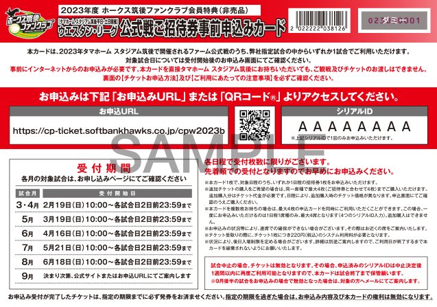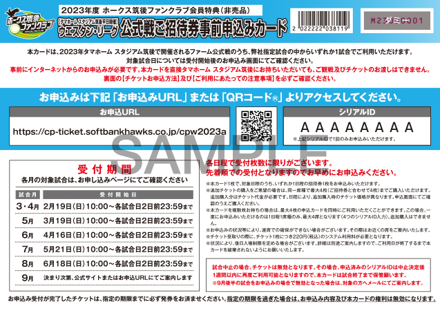 2023年度のホークス筑後ファンクラブ会員(対象者)の皆さまへ、入会グッズに同梱されているチケット特典の使用方法についてご案内いたします。