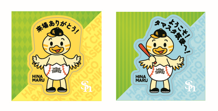主にファーム公式戦開催日には、HAWKSベースボールパーク筑後のキャラクター「ひな丸」が可愛くデザインされたステッカーが登場します!ショップや入場ゲートのスタッフへお声がけください☆