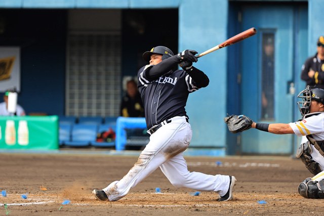 そしてホーキンス選手はチャンスの場面で右中間へ流し打ってタイムリー二塁打を放てば、その後の打席ではレフトへ豪快に引っ張り場外に消えていくホームランを放ってスタンドを大いに沸かせました。「徐々に慣れて行っている段階。まだまだこれから」と言いつつも、二塁打は「逆方向への長打も長所のひとつ」と話し、場外本塁打については「感触は良かった。どんな状況でも、チームの得点につなげるのが自分の役割」と満足そうでした。また、大きな歓声を浴びて「皆さんがハッピーな気持ちになって、自分もハッピーだった」と笑顔を浮かべていました。