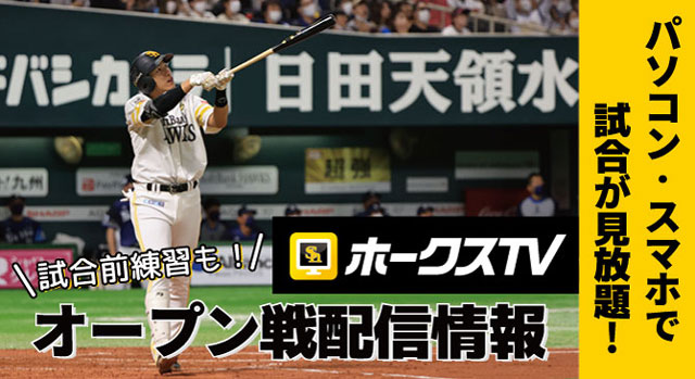 ホークスTV会員なら、ソフトバンクが運営する「ベースボールLIVE」でオープン戦中継が見られます!さらに、PayPayドーム開催のオープン戦は試合前練習も生配信!