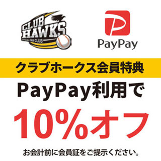 会員証を提示して、PayPayドーム内の飲食がPayPayでお支払いをすると、最大10%オフになります!