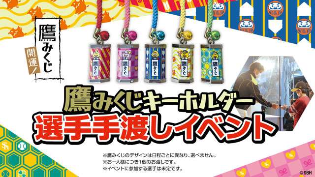 試合前に選手から手渡しで「鷹みくじキーホルダー(非売品)」がもらえるイベントです。