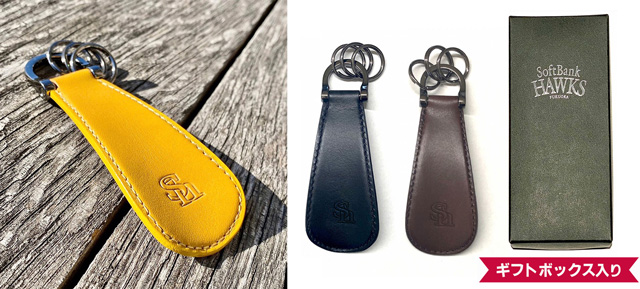 本革を使用したオシャレで落ち着いたアイテムです!ケース(ギフトボックス)付きなのでホークス好きな男性へのギフトにも最適です♪選べる3色展開です!