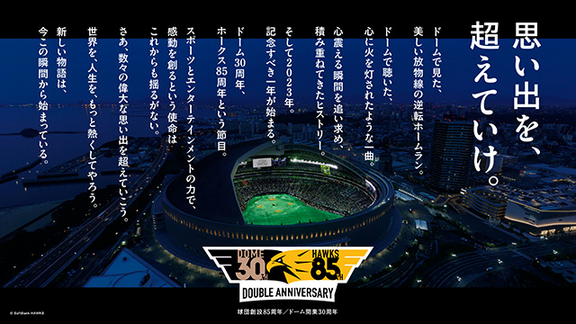 2023年、ホークスは球団創設85周年とドーム開業30周年のダブルアニバーサリーイヤーを迎えます!