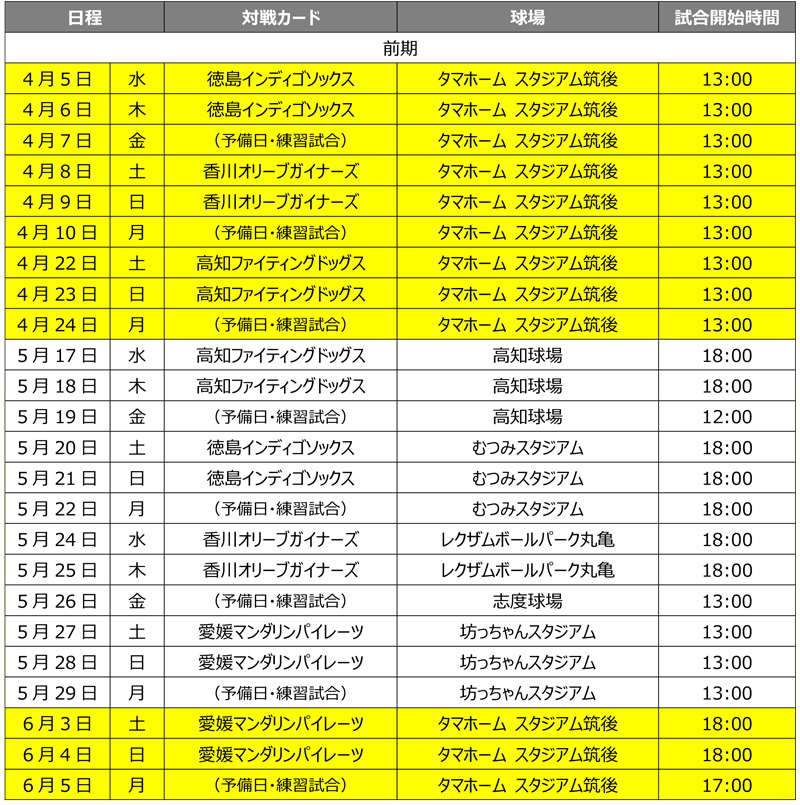 - ※ホーム試合(タマスタ筑後)におけるチケット販売等の詳細は、ホークス公式サイトにてお知らせします。