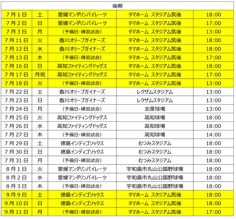 - ※定期交流戦予備日は、初日・2日目が消化された場合、練習試合として開催予定です。