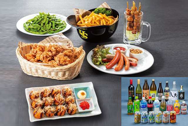 選手出身の素材を盛り込んだ、応援セットメニューおよびフリードリンクをお楽しみいただけます。セットメニューは隔月で入れ替わりご提供いたします。