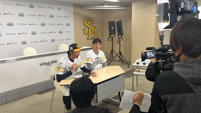 現役時代登板日以外はカレーうどんをいつも食べていたというほど、カレーうどんが大好きな斉藤和巳コーチ。リクエストに応えて商品化し、さらに勝利への思いを込めて、勝牛自慢の厚切り牛タンのカツを載せました。