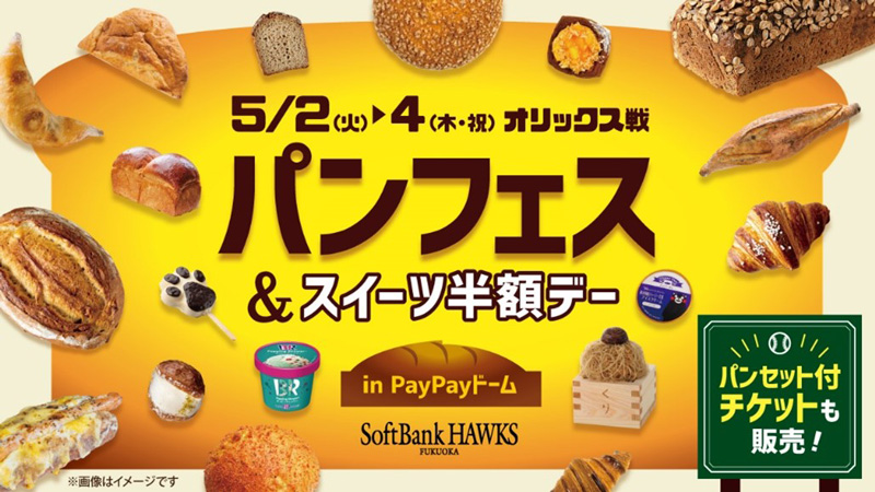 パン・スイーツ好きの方必見!ゴールデンウィーク期間中の5月2日(火)~4日(木・祝)のオリックス戦は、パンフェス&スイーツ半額デーを開催!