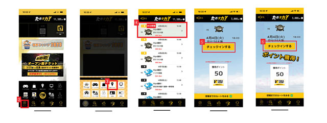 ホークスビジター応援ブースにお越しいただかなくても、球場内からのアプリ操作でポイント獲得ができます。