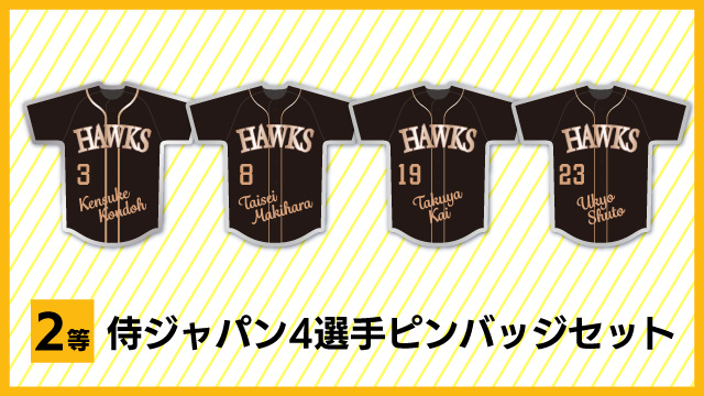 クラブホークスでは開幕3連戦の3日間、PayPayドームでクラブホークスに新規入会された方を対象に、侍ジャパン選手(近藤選手・牧原大成選手・甲斐拓也選手・周東選手)の「直筆サイン色紙・ボール」「ピンバッジセット」「缶バッジセット」が当たるガラポン抽選会を実施します。この機会に、皆さまのクラブホークスのご入会をお待ちしています。