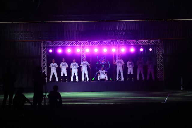 葛城ミサトの「総員第一種戦闘配置!」の掛け声とともに始まり、「福岡ソフトバンクホークス発進!」のあと、高橋洋子さんが「残酷な天使のテーゼ」の生歌を披露。そして、初号機と2本の槍に囲まれた藤本監督、スターティングメンバ―が登場し、場内を盛り上げました。