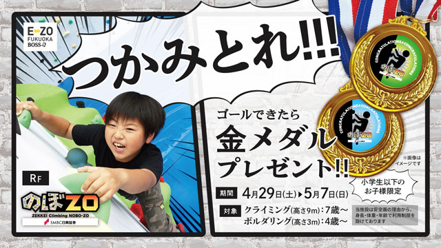 絶景3兄弟「のぼZO」SMBC日興証券では、お子さまに大人気の「金メダルチャレンジ」を開催します!