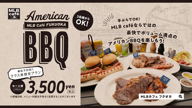 3F「MLB café FUKUOKA」ではPayPayドームを眺めながら楽しめるアメリカンBBQプランをGWも好評販売中♪MLB caféならではの豪快でボリューム満点のメニューをご提供☆ここでしか楽しめないBBQをお楽しみください!