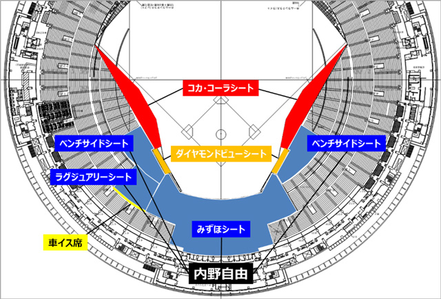 - ※コカ・コーラシート、コカ・コーラ テーブルシート、ダイヤモンドビューシートは4歳以上のお子さまより同種類のチケットが必要となります。内野自由席、車イス席は中学生以上のお客さまより同種類のチケットが必要となります。