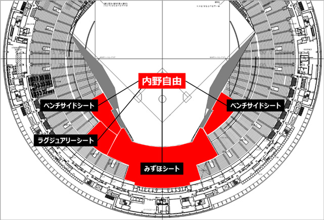 当日、対象の内野エリア(コカ・コーラシート・ダイヤモンドビューシート・車いすゾーンを除く)は自由にご着席いただけます!さらに内野自由席は小学生以下の入場が無料!