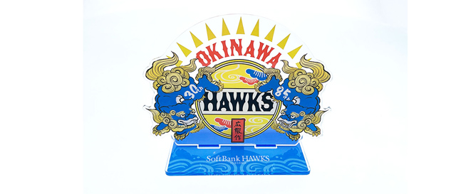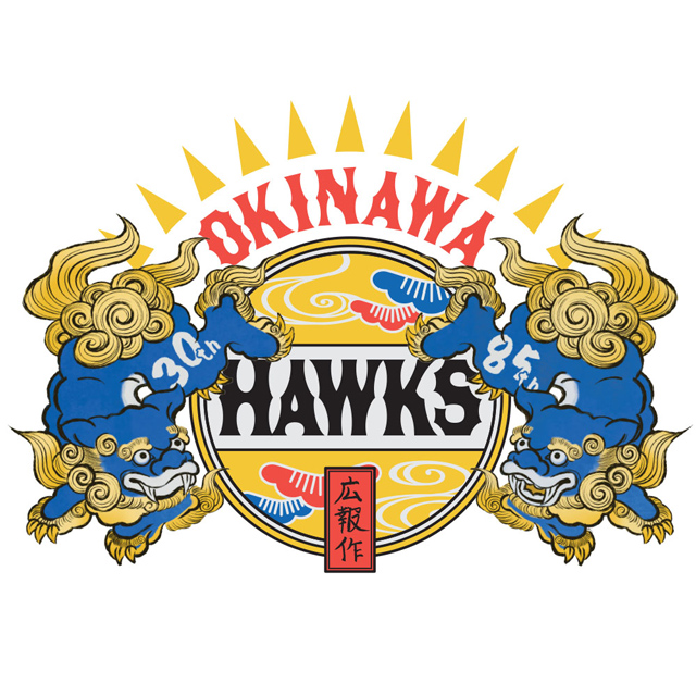 「OKINAWA」と「HAWKS」の文字を中心に沖縄を象徴するキャラクターのシーサーの中には、ホークスのドーム「30th」・球団創設「85th」の数字が刻まれています。